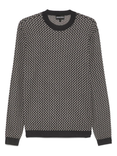 black crew neck long sleeves ribbed cuffs and hem Allover logo wool blend sweater Size and Fit - This piece fits true to size. We recommend you get your regular size. Model is 1,84m / 6ft 1in wearing size M