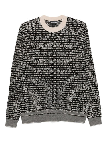Emporio Armani Emporio Armani Virgin wool sweater with jacquard logo and all-over signature