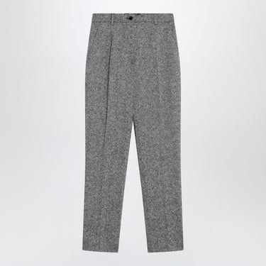 Dolce & Gabbana pants in grey and black mixed wool with a dotted pattern, featuring a front closure with zip and button, belt loops, two side welt pockets, and two back welt pockets. Size and Fit - Model wears size 40 IT Model measurements: Height: 178 cm Chest: 83 cm Waist: 63 cm Hips: 91 cm