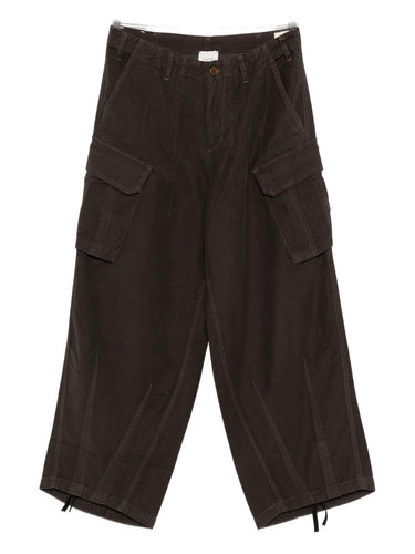 brown two side cargo pockets button fly fastening belt loops Cargo trousers