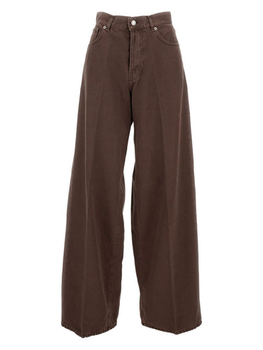 brown zip-fly button closure leather label back patch pockets cotton blend Bethany denim jeans