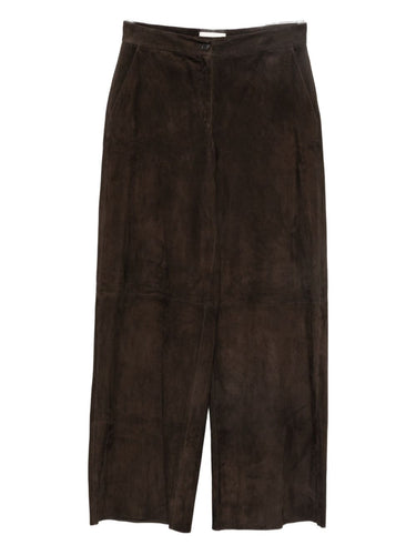 cedar brown high-waisted side pockets button fastening concealed fly straight leg Leather wide-leg trousers