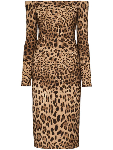 Dolce & Gabbana off-the-shoulder Leopard Print Midi Dress