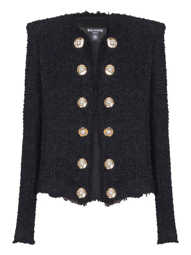 black decorative button detailing long sleeves straight hem Tweed short jacket Size and Fit - This piece fits true to size. We recommend you get your regular size. Model is 1,75m / 5ft 8in wearing size 36 (FR)