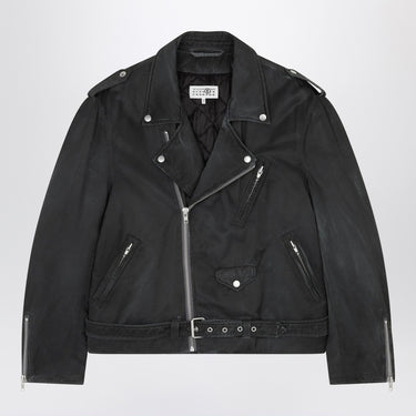 MM6 Maison Margiela MM6 Maison Margiela Black washed-effect biker jacket