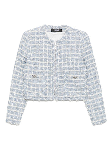 light blue front zip fastening two front pouch pockets Tweed jacket Size and Fit - This piece fits true to size. We recommend you get your regular size. Model is 1,75m / 5ft 8in wearing size 40 (IT)