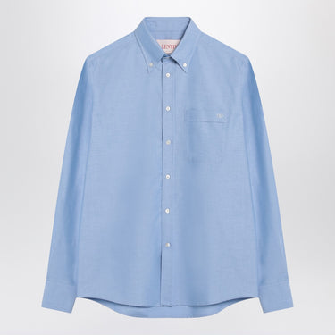 Light blue cotton Valentino shirt featuring long sleeves with buttoned cuffs, a button-down collar, a patch pocket on the chest with logo embroidery and a front button placket. Size and Fit - Model wears size 41 Model measurements: Height: 187 cm Chest: 102 cm Waist: 76 cm Hips: 92 cm