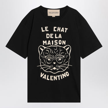 Valentino Valentino Black T-shirt with Le Chat de la Maison print