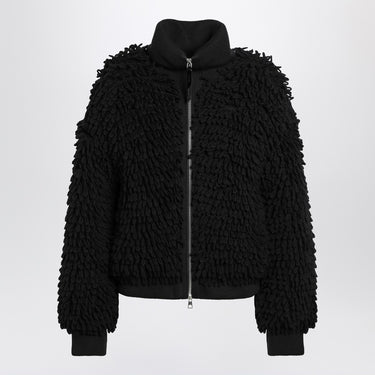 Black virgin wool-blend cardigan by Moncler Genius X EE72 by Edward Enninful, featuring high neck, front closure with double zip, long sleeves, ribbed edges, dropped shoulders, and back logo patch. Size and Fit - Model wears size S Model measurements: Height: 178 cm Chest: 83 cm Waist: 63 cm Hips: 91 cm