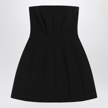 Short bustier dress by Max Mara Pianoforte in black stretch sable, characterized by a fitted silhouette with vertical cut patterns at the waist, a zip closure at the back, two side pockets, and a removable underskirt. Size and Fit - Model wears size 40 IT Model measurements: Height: 178 cm Chest: 89 cm Waist: 62 cm Hips: 88 cm