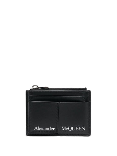 Porte-cartes à imprimé logo Alexander McQueen en cuir de veau noir/blanc, avec logo imprimé sur le devant, compartiment zippé et fentes pour cartes. Taille et coupe - Largeur 12 cm Hauteur 9 cm Profondeur 2 cm