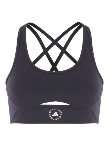 black cross straps logo detail scoop neck close-fitting Logo gym bra