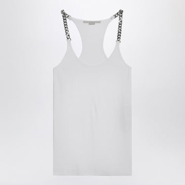 White cotton tank top from Stella McCartney featuring a ribbed design, chain shoulder straps, a round neckline and a slim fit. Size and Fit - Model wears size S Model measurements: Height: 179 cm Chest: 82 cm Waist: 65 cm Hips: 90 cm