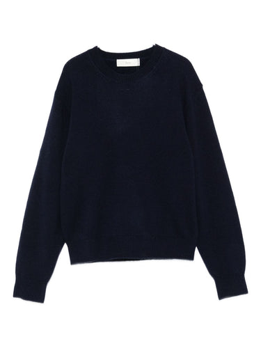 navy blue round neck long sleeves ribbed cuffs and hem Wool crewneck sweater