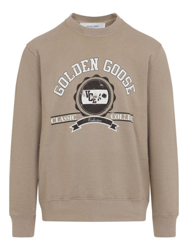 beige crew neck cotton logo print Logo cotton sweatshirt
