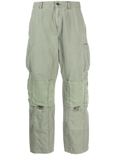 Pantalon de travail taille mi-haute à jambe droite de JOHN ELLIOTT en mélange de coton vert olive clair, taille mi-haute, fermeture à bouton et à glissière sur le devant, deux poches plaquées sur le devant, deux poches plaquées sur les côtés, deux poches plaquées à l'arrière, jambe droite et ourlet droit. Taille et coupe - Cette pièce taille normalement. Nous vous recommandons de prendre votre taille habituelle. Le mannequin mesure 1,75 m et porte une taille S
