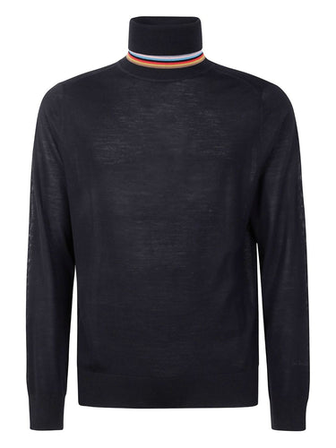 black roll-neck multicolored stripe detail long sleeves ribbed cuffs and hem Wool turtle-neck sweater
