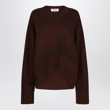 Crew neck sweater by The Attico in brown wool and cashmere, featuring long sleeves, ribbed trims, tone-on-tone logo embroidery on the chest, and asymmetric hem shorter at the front. Size and Fit - Model wears size 40 IT Model measurements: Height: 178 cm Chest: 83 cm Waist: 63 cm Hips: 91 cm