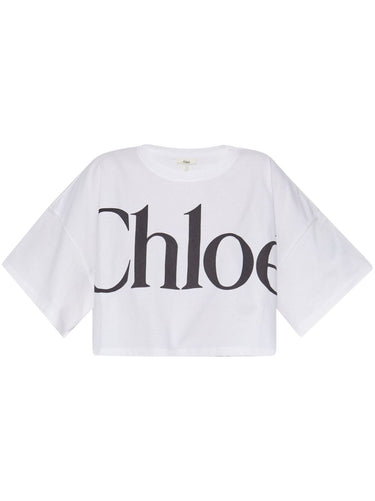 white/grey cotton cropped logo print to the front drop shoulder round neck three-quarter length sleeves straight hem Logo cotton t-shirt