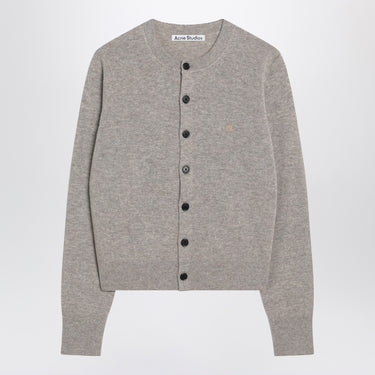 Cardigan by Acne Studios in grey melange yak wool, featuring crewneck, front button fastening, embroidered logo on the chest, ribbed neckline, cuffs and hem.