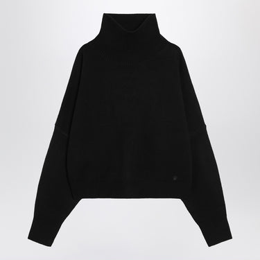 LouLou de Saison sweater in black wool and cashmere, featuring long sleeves, dropped shoulders, high neck, ribbed trims, and small tone-on-tone logo embroidery on front. Size and Fit - Model wears size S Model measurements: Height: 179 cm Chest: 82 cm Waist: 65 cm Hips: 90 cm