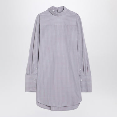 Oversized shirt by Dries Van Noten in light blue cotton poplin featuring a subtle checked pattern, a high collar design, a back button fastening, long sleeves, button cuffs and a curved hem. Size and Fit - Model wears size S Model measurements: Height: 180 cm Chest: 85 cm Waist: 66 cm Hips: 89 cm