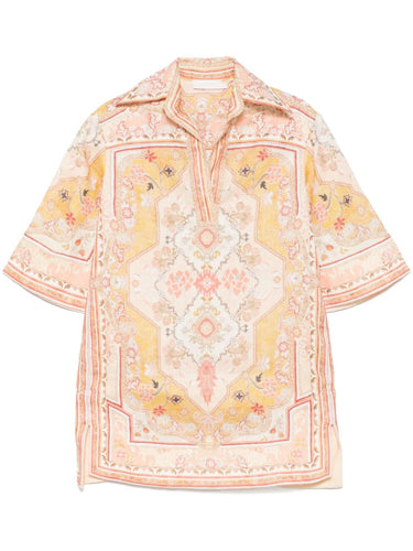 sunflower yellow spread collar short sleeves two side inset pockets Wylie printed linen tunic Size and Fit - This piece fits true to size. We recommend you get your regular size. Model is 1,75m / 5ft 8in wearing size 1 (NUM)