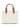 off-white/brown cotton blend canvas embroidered logo to the front two rolled top handles hook fastening internal slip pocket adjustable shoulder strap B-Army small canvas tote