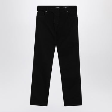 Balmain jeans in black cotton denim, characterized by belt loops, rounded flap, zip and hook closure under the flap, five classic pockets, and a logo label on the back. Size and Fit - Model wears size 32 Model measurements: Height: 185 cm Chest: 105 cm Waist: 85 cm Hips: 100 cm