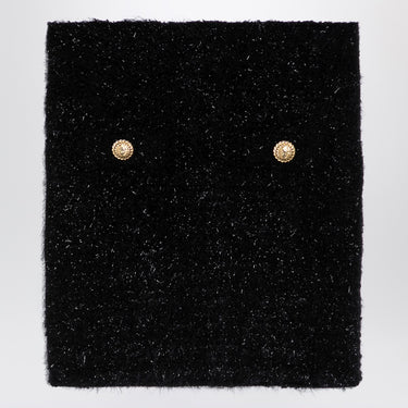 Black cotton and viscose blend miniskirt by Balmain with shiny threads, featuring a back zip fastening and two gold logo buttons on the front. Size and Fit - Model wears size 36 FR Model measurements: Height: 179 cm Chest: 82 cm Waist: 65 cm Hips: 90 cm
