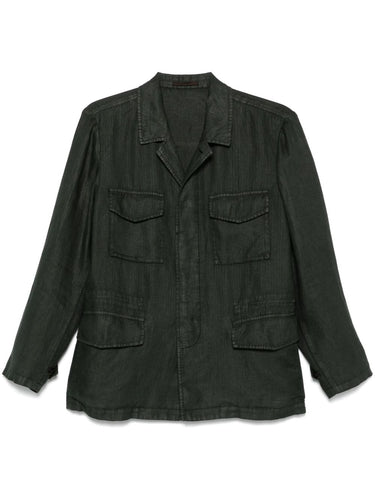 dark green concealed front button fastening two chest flap pockets two side flap pockets long sleeves Giacca in lino Size and Fit - This piece fits true to size. We recommend you get your regular size. Model is 1,84m / 6ft 1in wearing size 48 (IT)