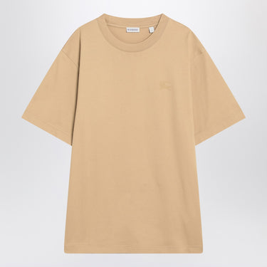 Beige cotton T-shirt by Burberry, featuring a crew neck, short sleeves, and tone-on-tone EKD print on the back. Size and Fit - Model wears size L Model measurements: Height: 187 cm Chest: 102 cm Waist: 76 cm Hips: 92 cm