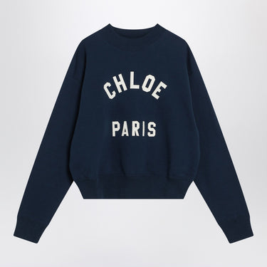 Navy blue cotton crew neck sweatshirt by Chloé, featuring front logo embroidery, ribbed collar, cuffs, and hem. Size and Fit - Model wears size S Model measurements: Height: 179 cm Chest: 82 cm Waist: 65 cm Hips: 90 cm
