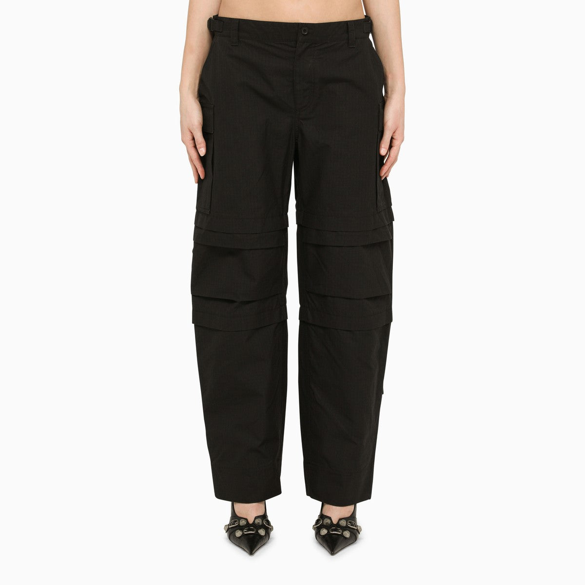 Black cotton trousers from Wardrobe.nyc, featuring a low waist, various pockets on the front, back and sides and a baggy fit. Size and Fit - Model wears size S Model measurements: Height: 179 cm Chest: 82 cm Waist: 65 cm Hips: 90 cm