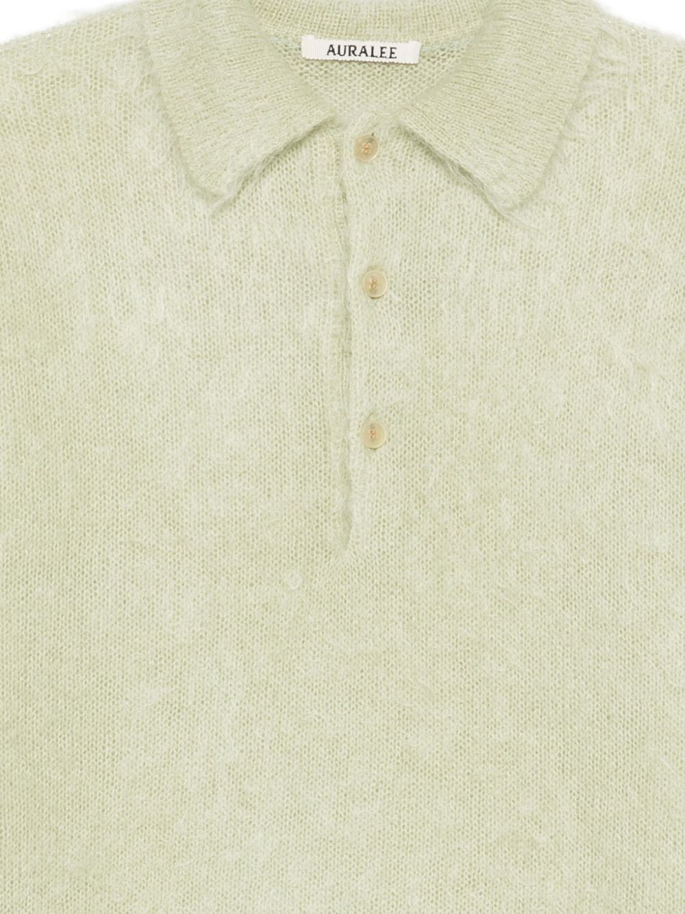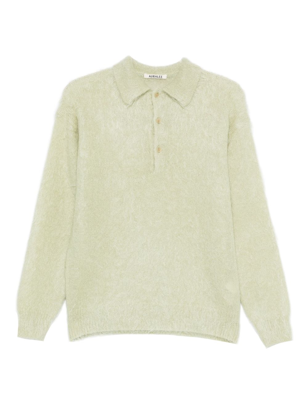 light green front button placket long sleeves ribbed cuffs Wool polo shirt