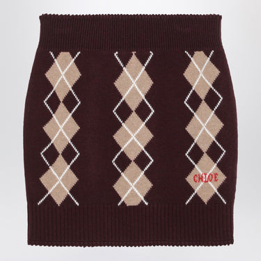 Chloé Bordeaux diamond-pattern wool miniskirt