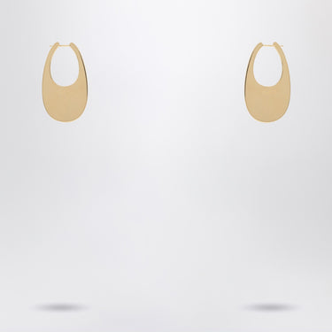 Coperni earrings in gold-plated brass, featuring a lever closure for pierced lobes, oval design, and engraved logo lettering.