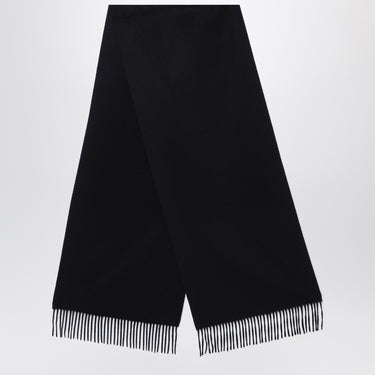 Black cashmere scarf by Destin Surl with small fringed edges.