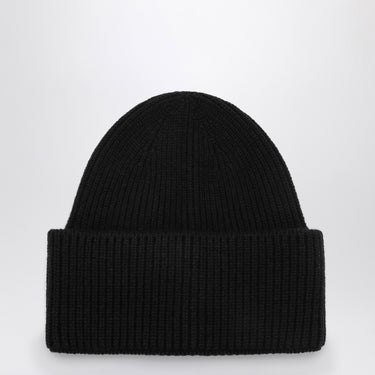 Black wool and cashmere beanie by Destin Surl featuring a ribbed weave and turned-up hem.