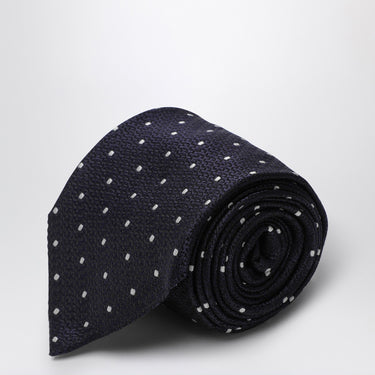 Silk blue tie with white polka dot pattern by Destin Surl.