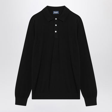 Black cotton Drumohr polo, characterized by buttons on the front, long sleeves, and ribbed edges. Size and Fit - Model wears size 50 IT Model measurements: Height: 185 cm Chest: 105 cm Waist: 85 cm Hips: 100 cm