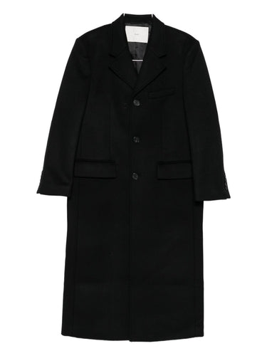 black front button fastening side flap pockets notched lapels long sleeves Wool single-breasted coat