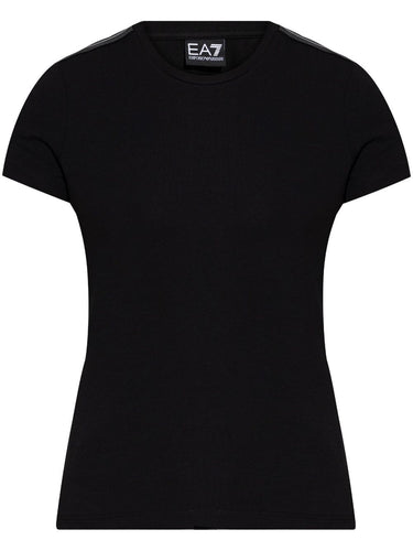 black crew neck short sleeves logo-tape detailing logo print to the rear Logo cotton t-shirt Size and Fit - This piece fits true to size. We recommend you get your regular size. Model is 1,75m / 5ft 8in wearing size S