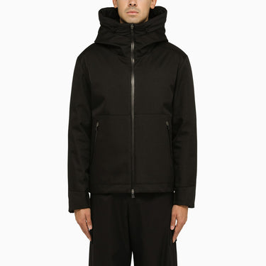 Black nylon Herno jacket, featuring a fixed hood, zip fastening and two front pockets. Size and Fit - Model wears size 50 IT Model measurements: Height: 185 cm Chest: 100 cm Waist: 83 cm Hips: 92 cm