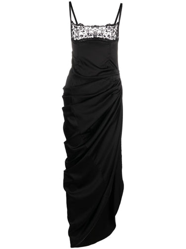 La Saudade floral-embroidered minidress from Jacquemus featuring black, adjustable spaghetti straps, square neck, tulle panel, floral embroidery, tulle panel, gathered detailing, open back, draped detailing, asymmetric hem and ankle-length. La Saudade Longue Brodée dress Size and Fit - This piece fits true to size. We recommend you get your regular size. Model is 1,75m / 5ft 8in wearing size 36 (FR)