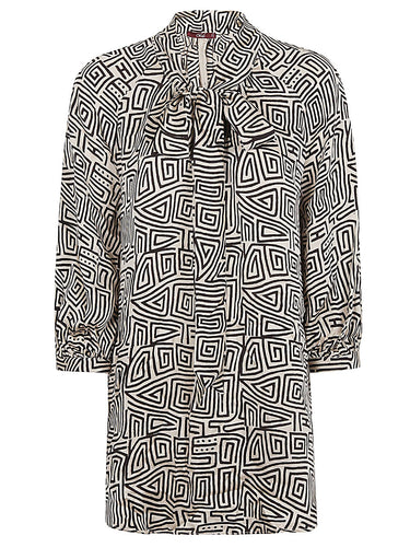 Camicia con scollo a V, stampa grafica monigramm, maniche lunghe e orlo dritto. Printed silk shirt Size and Fit - This piece fits true to size. We recommend you get your regular size. Model is 1,75m / 5ft 8in wearing size S