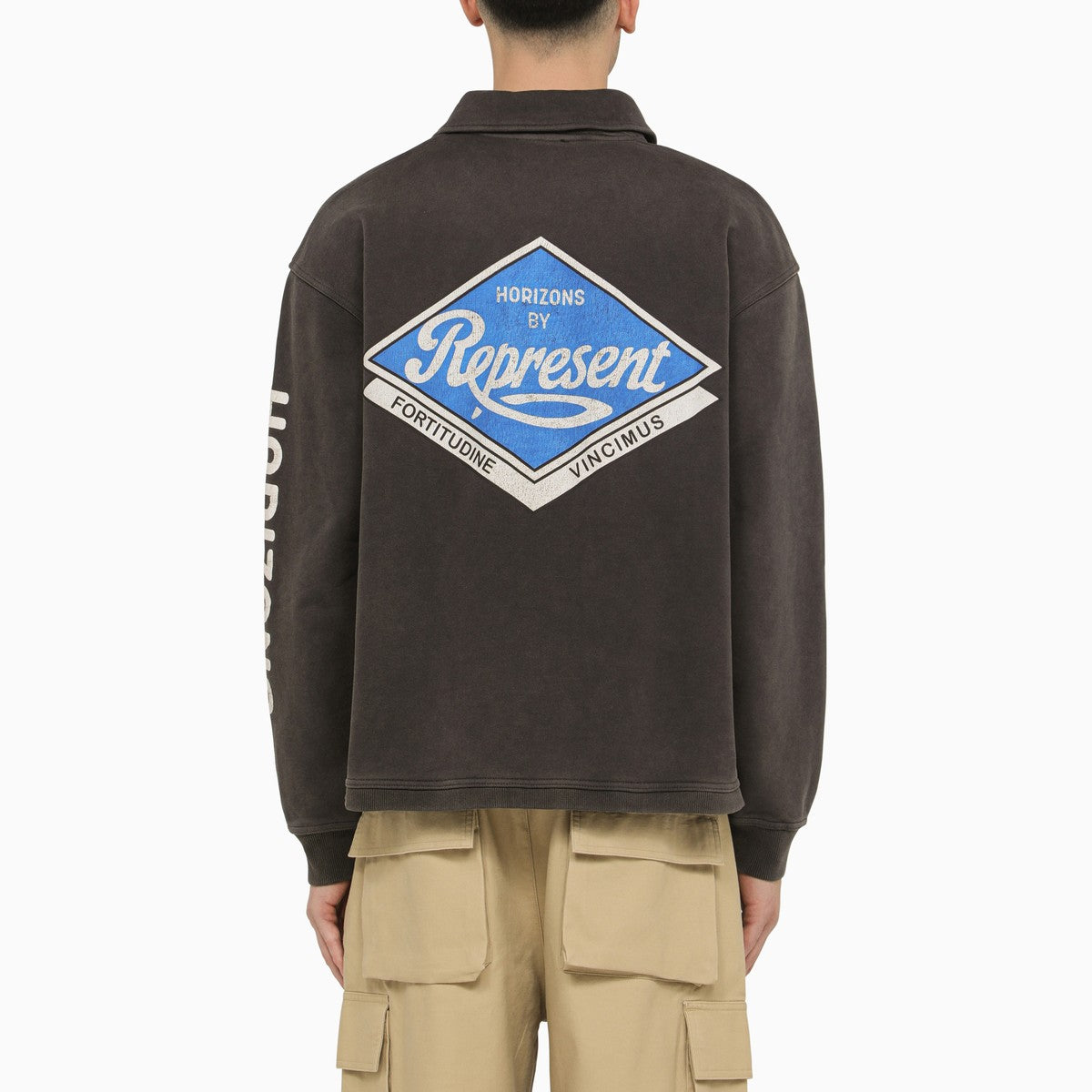 Represent Represent Black washed effect cotton polo shirt with logo