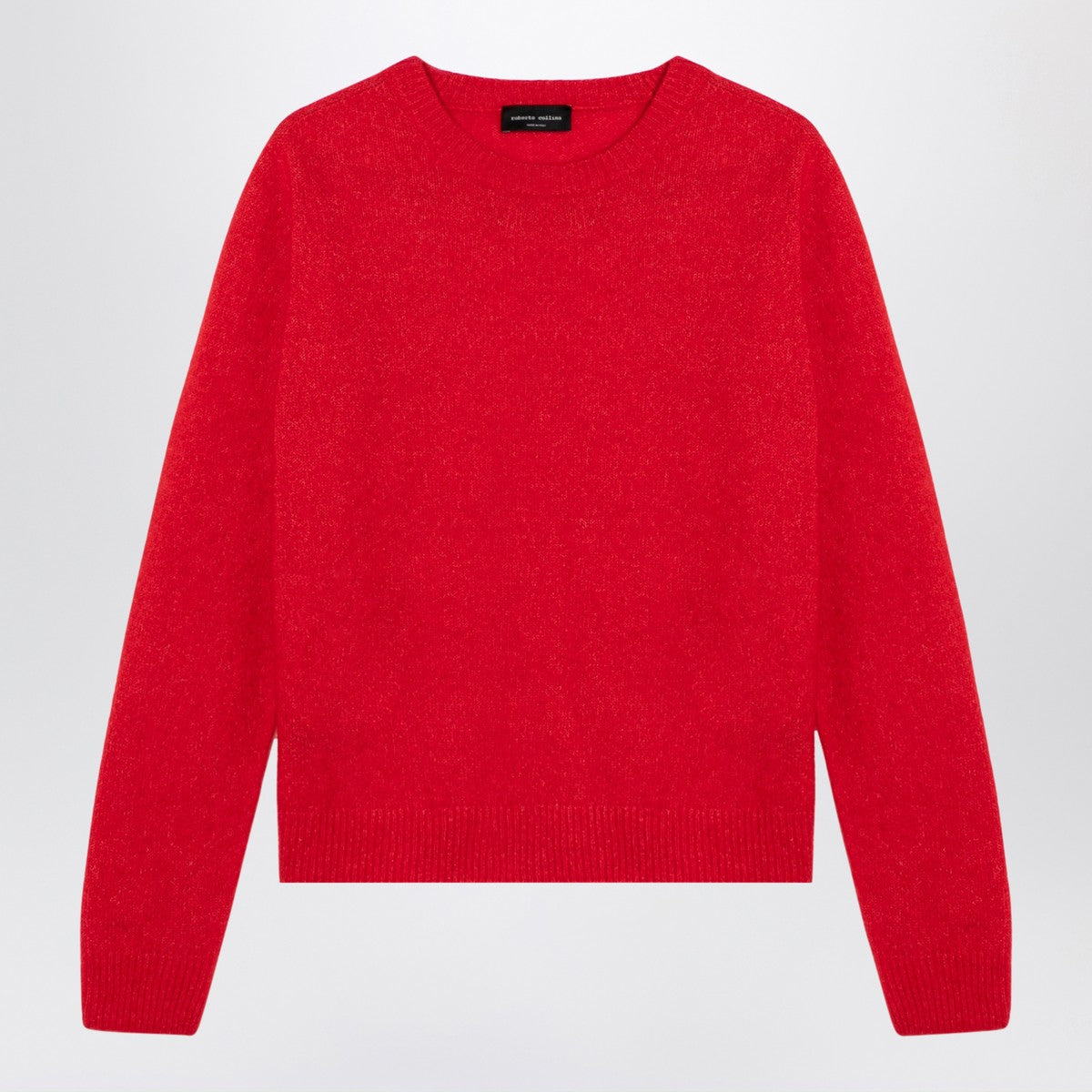 Red cashmere-silk blend crew-neck sweater by Roberto Collina features long sleeves, ribbed hems and a straight hem. Size and Fit - Model wears size S Model measurements: Height: 179 cm Chest: 82 cm Waist: 60 cm Hips: 89 cm