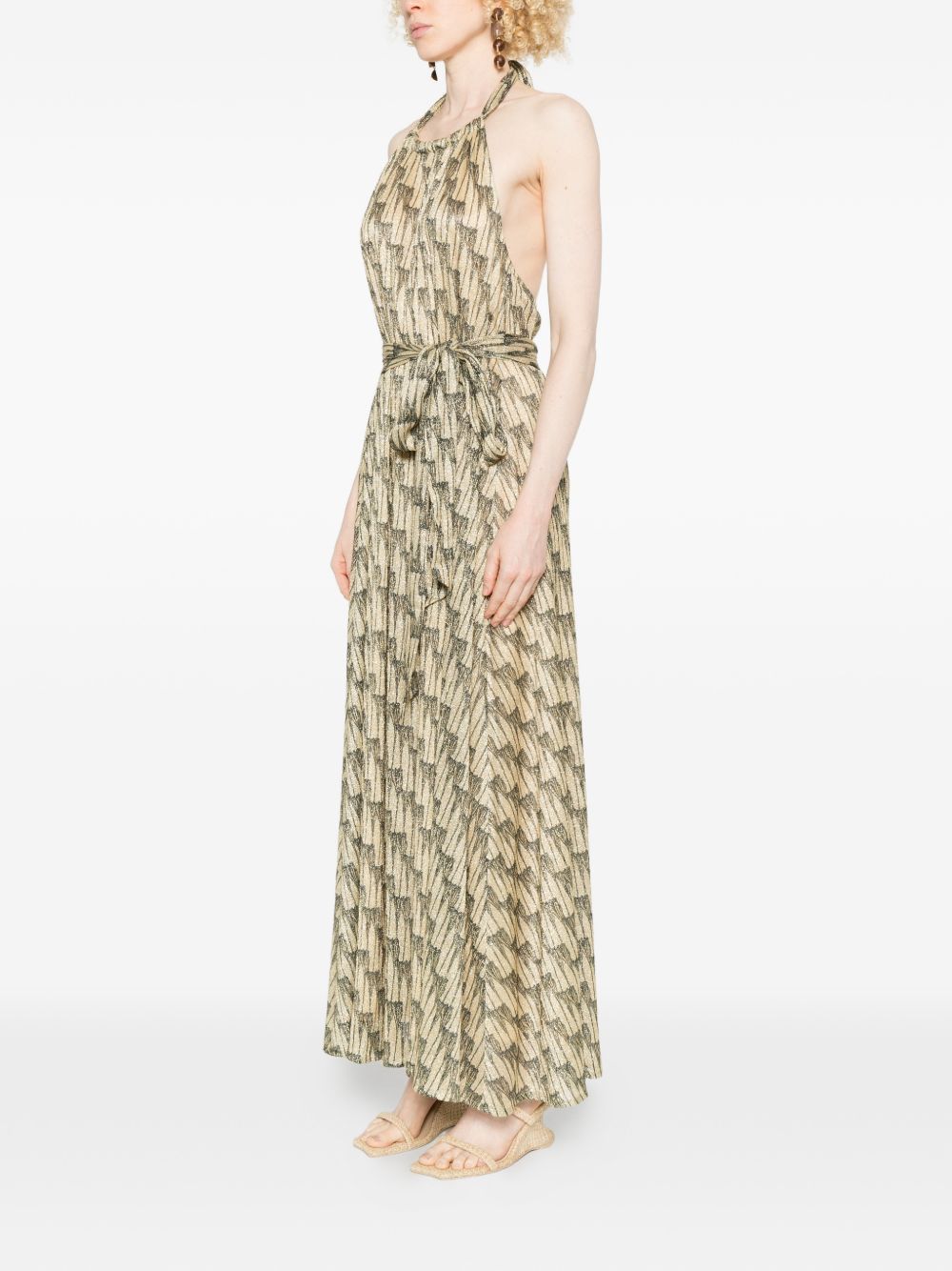 gold-tone/green tie belt halterneck allover print Ars long dress