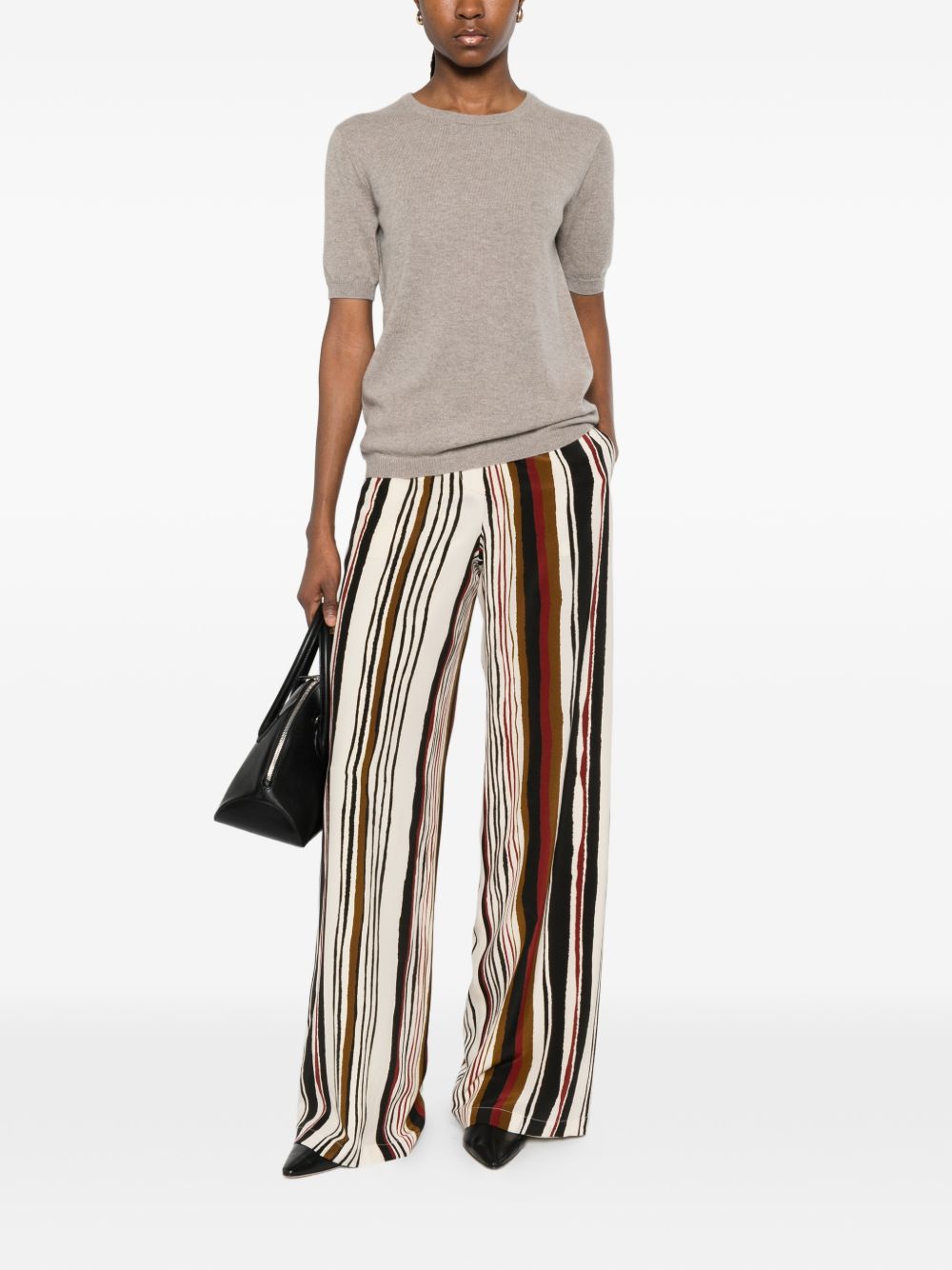 grey round neck short sleeve Cashmere crewneck sweater